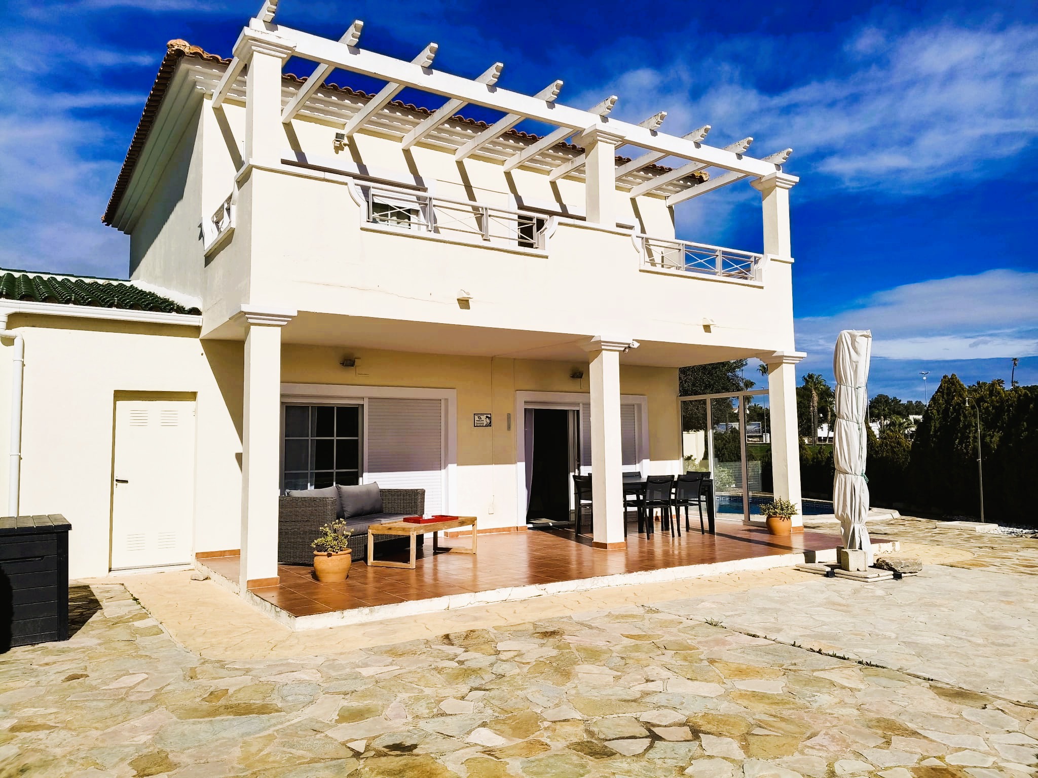Rustig gelegen, ruime villa met 2 badkamers waarvan 1op elke verdieping. Goed uitgeruste keuken. Privé- parking bij de villa. Goede communicatie met eigenaar. Zwembad was mooi met zeer helder water maar gezien het tijdstip van het jaar te koud ( maar dat wisten we). Mooi en ruim terras. Spijtig dat er geen winkel is op het domein zelf en je telkens naar het andere resort moet voor kleine aankopen. Er is wel een clubhouse. Rolluiken aan master-bedroom waren stuk, spijtig dat we niet van het mooie terras op de eerste verdieping konden genieten.