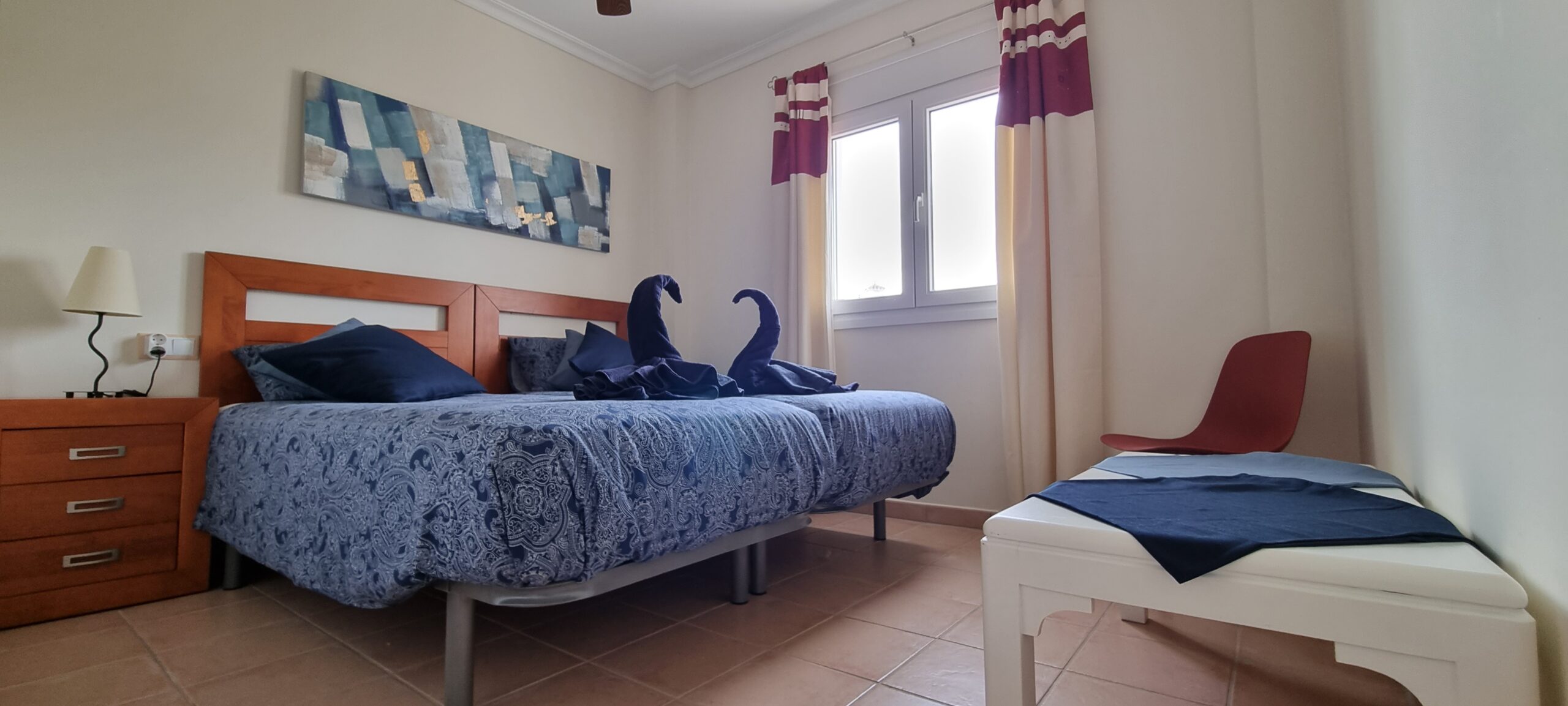 Casa Rebecca is een modern en volledig uitgerust vakantieappartement in Murcia, gelegen op de eerste verdieping van het luxe Altaona Golf Resort. Met 2 slaapkamers en 1 badkamer is deze accommodatie geschikt voor maximaal 4 personen – ideaal voor een ontspannen vakantie met je gezin, partner of vrienden. Dankzij de combinatie van comfort, rust en voorzieningen, is Casa Rebecca een heerlijke uitvalsbasis voor je verblijf aan de Costa Cálida. Het balkon met uitzicht op het zwembad laat je optimaal genieten van het Spaanse buitenleven.