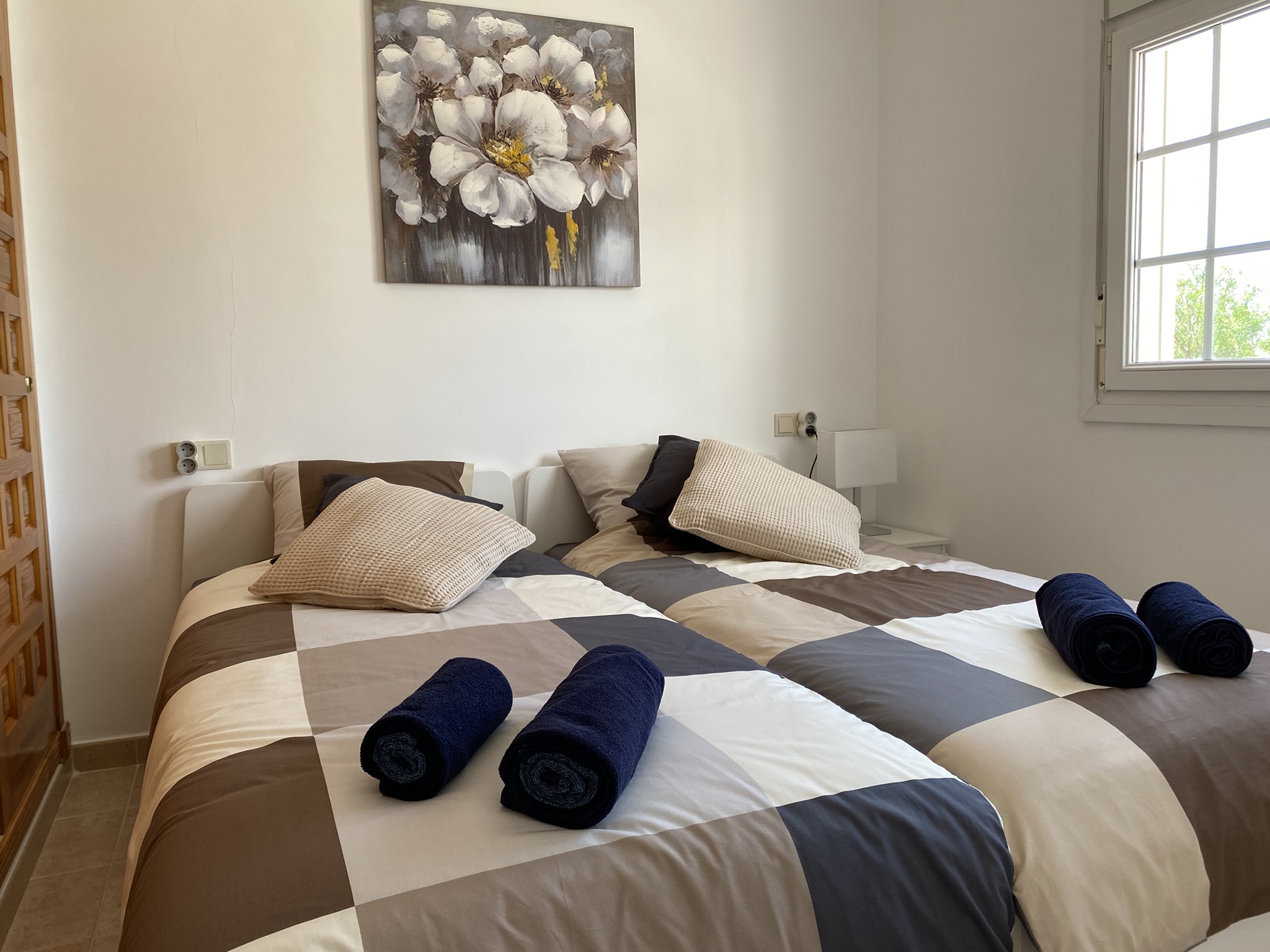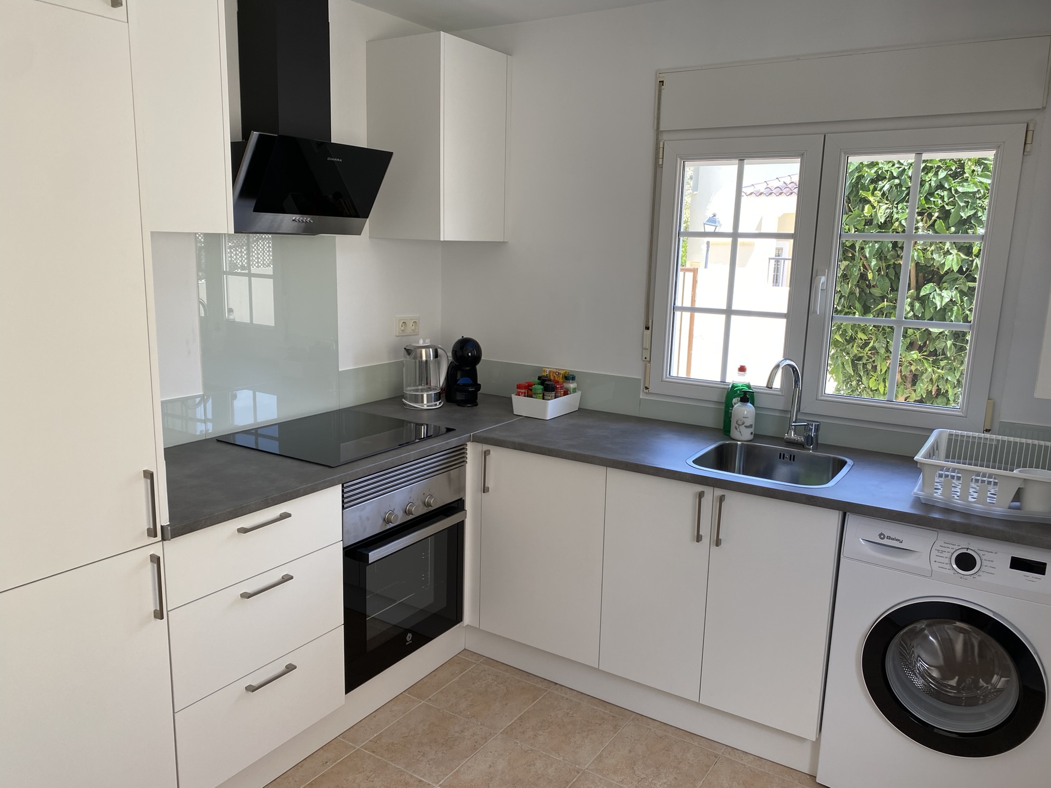 De villa heeft drie comfortabele slaapkamers en twee moderne badkamers, wat het verblijf perfect maakt voor gezinnen of meerdere stellen. De ruime woonkamer is sfeervol ingericht en voorzien van een grote flatscreen-tv. In de volledig uitgeruste keuken vind je onder andere een Dolce Gusto-koffiezetapparaat, oven, magnetron, vaatwasser en waterkoker. Ook een wasmachine en droger zijn aanwezig. Dankzij de airconditioning in het hele huis blijft het ook op warme dagen heerlijk koel.